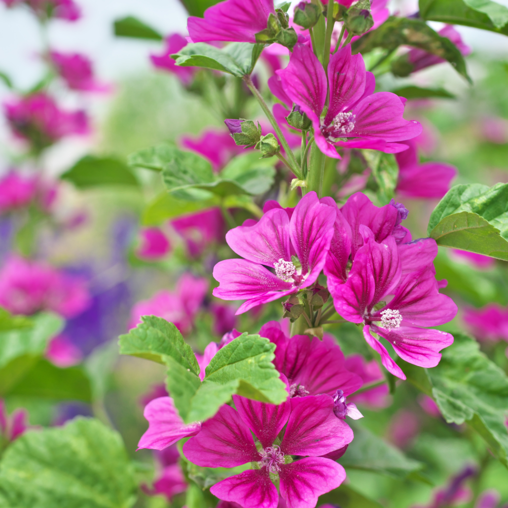 La malva s’anomena “mallow” en anglès, i els núvols de llaminadura, “marshmallow”. Coincidència? No pas: els núvols, antigament, es fèien a partir de l’arrel de la malva, el mucílag de la qual substituïa a la gelatina utilitzada actualment. Es cuinava l’arrel en sirop (sucre) i es deixava assecar, fent un dolç enganxós (però no esponjós) especialment utilitzat per a tractar bronquitis i altres afeccions respiratòries en criatures (que, evidentment, no deien pas que no a aquest deliciós remei). Van ser els francesos qui, més tard, van introduir a la recepta la clara d’ou batut.